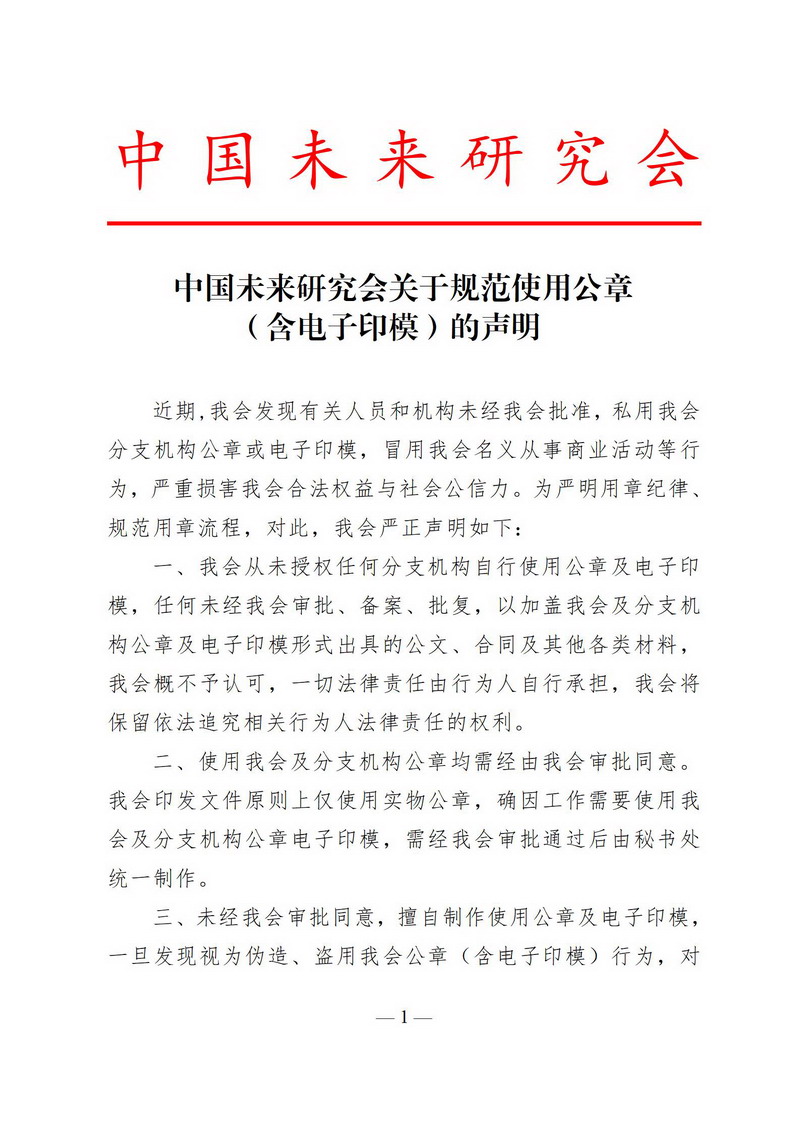 中国未来研究会关于规范使用公章(含电子印模)的声明