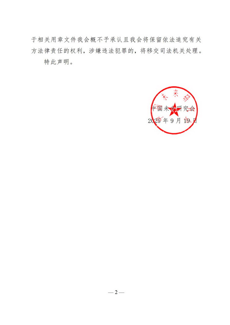 中国未来研究会关于规范使用公章(含电子印模)的声明